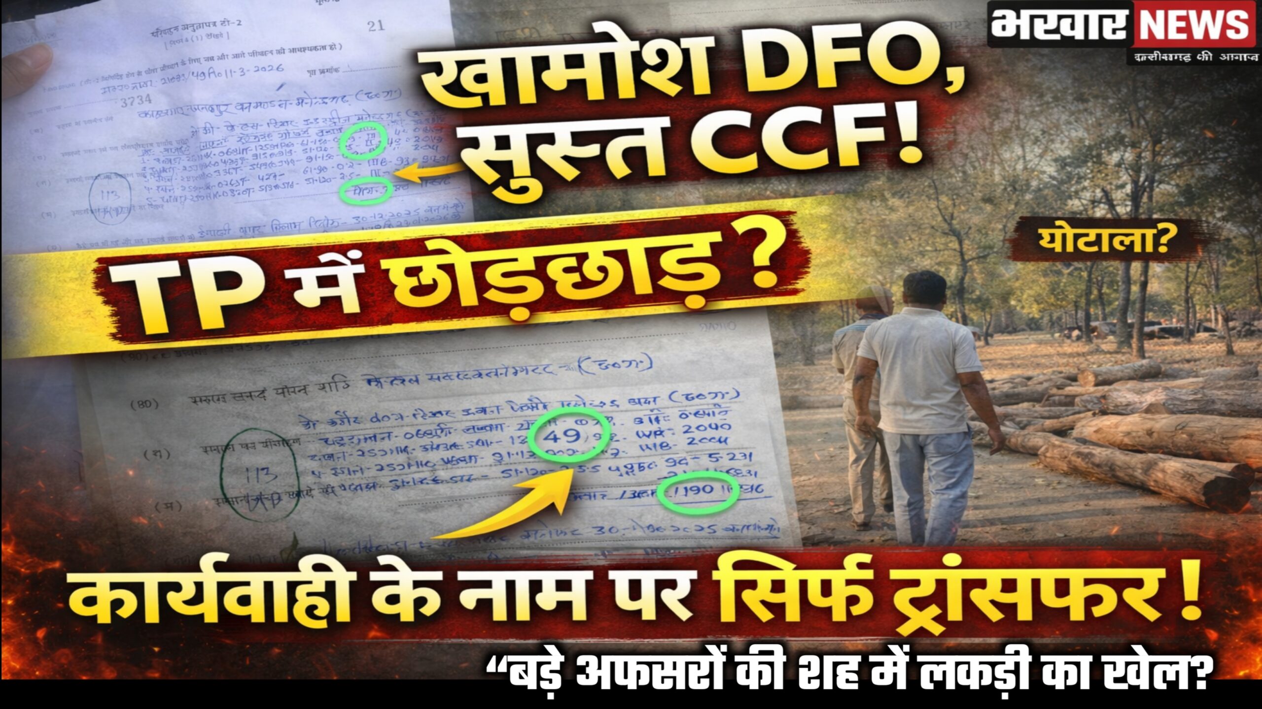 “खामोश DFO, सुस्त CCF — लकड़ी घोटाले पर पर्दा? TP में छेड़छाड़, कार्रवाई के नाम पर सिर्फ ट्रांसफर!”