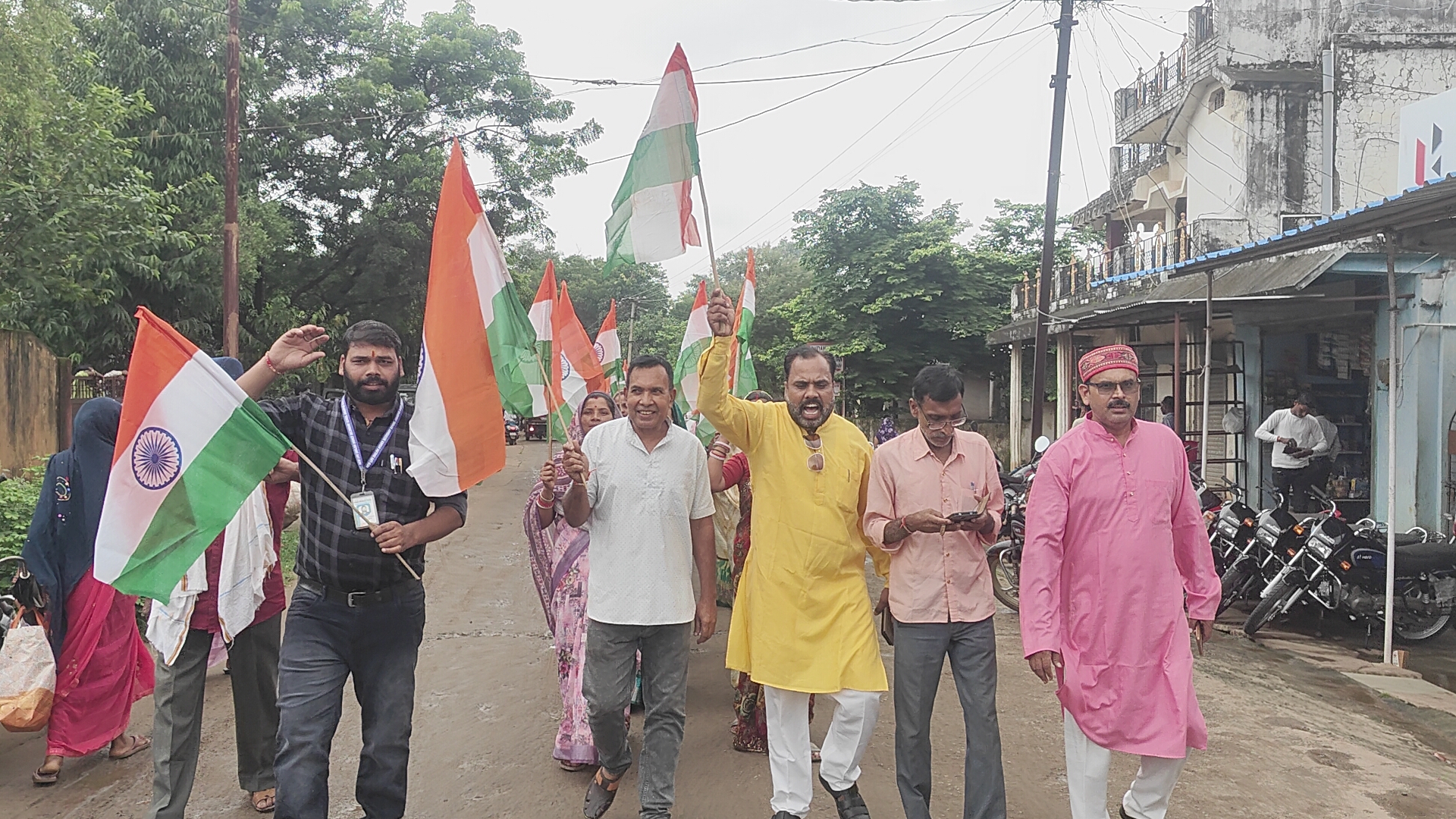 ऐसे में तिरंगा यात्रा के दौरान स्कूलों के छात्र छात्राओं एवं गांव गांव से आएं हुए भाजपा कार्यकर्ता व आमजनो के हाथों में रखे तिरंगा झंडा लहराते नज़र आते दिखाई दिये ।