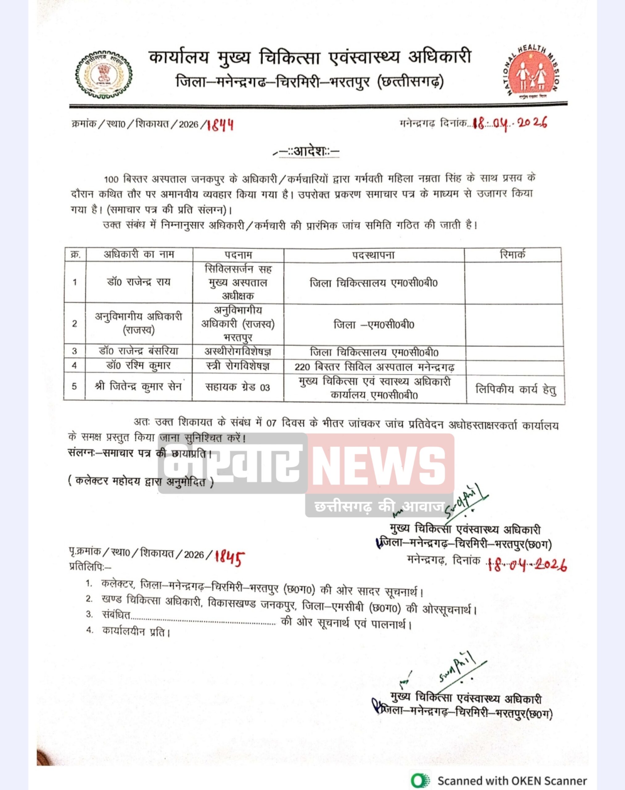 ब्रेकिंग: भखार न्यूज की खबर का असर: जनकपुर स्वास्थ्य केंद्र मामले में 5 सदस्यीय जांच टीम गठित