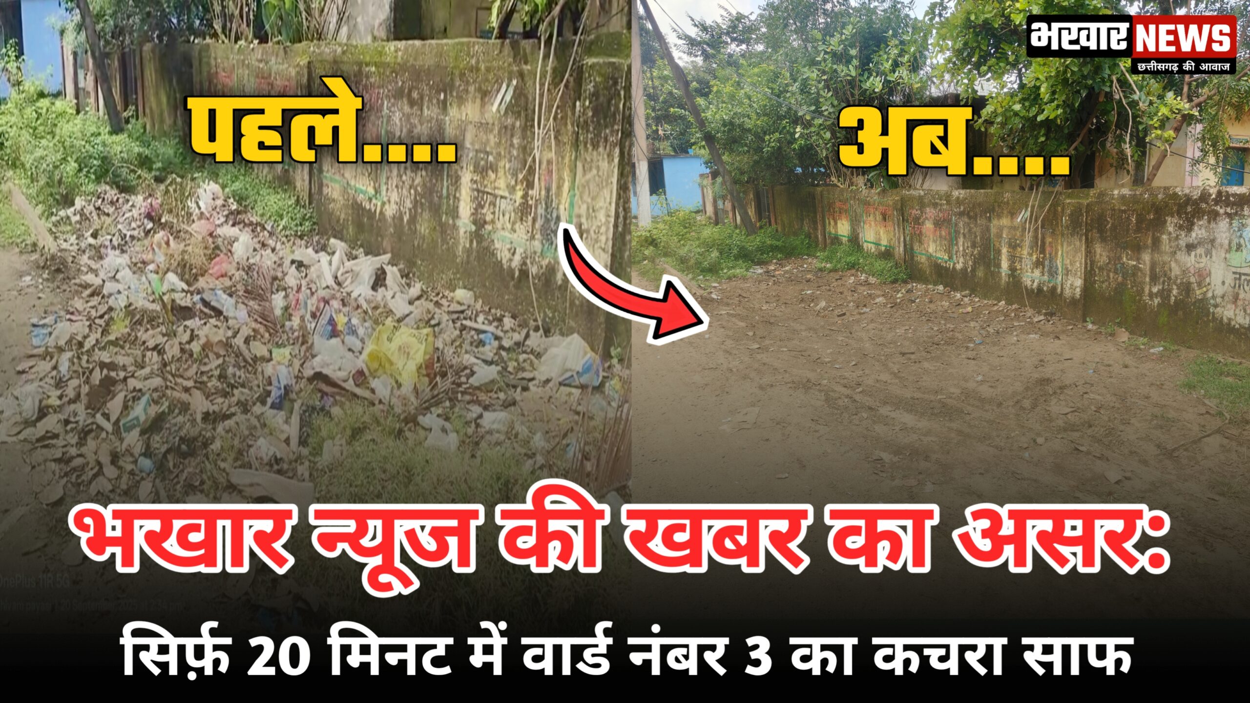 भखार न्यूज की खबर का असर: सिर्फ़ 20 मिनट में वार्ड नंबर 3 का कचरा साफ